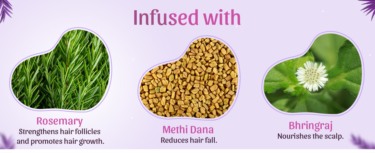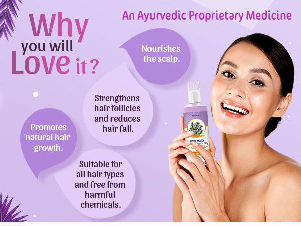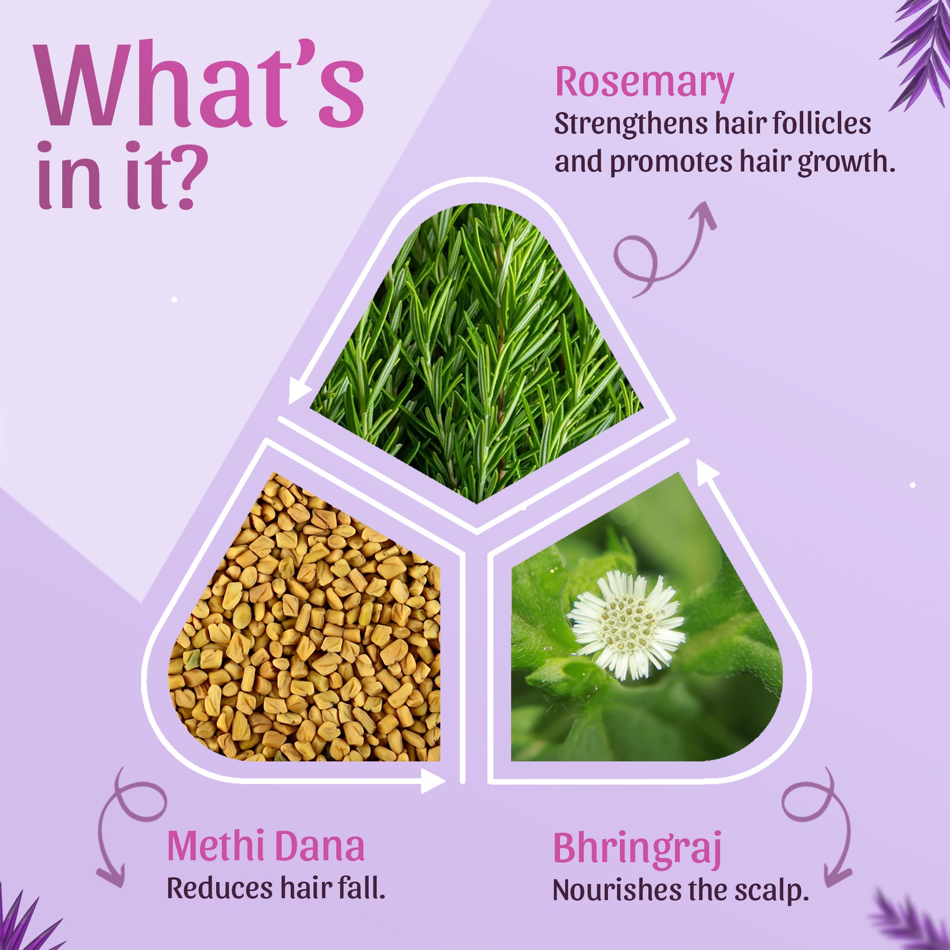 Rosemary Hair Growth Oil is a nourishing blend of rosemary and methi dana that revitalizes the scalp, improves circulation, and stimulates hair growth for stronger, shinier, and longer hair.