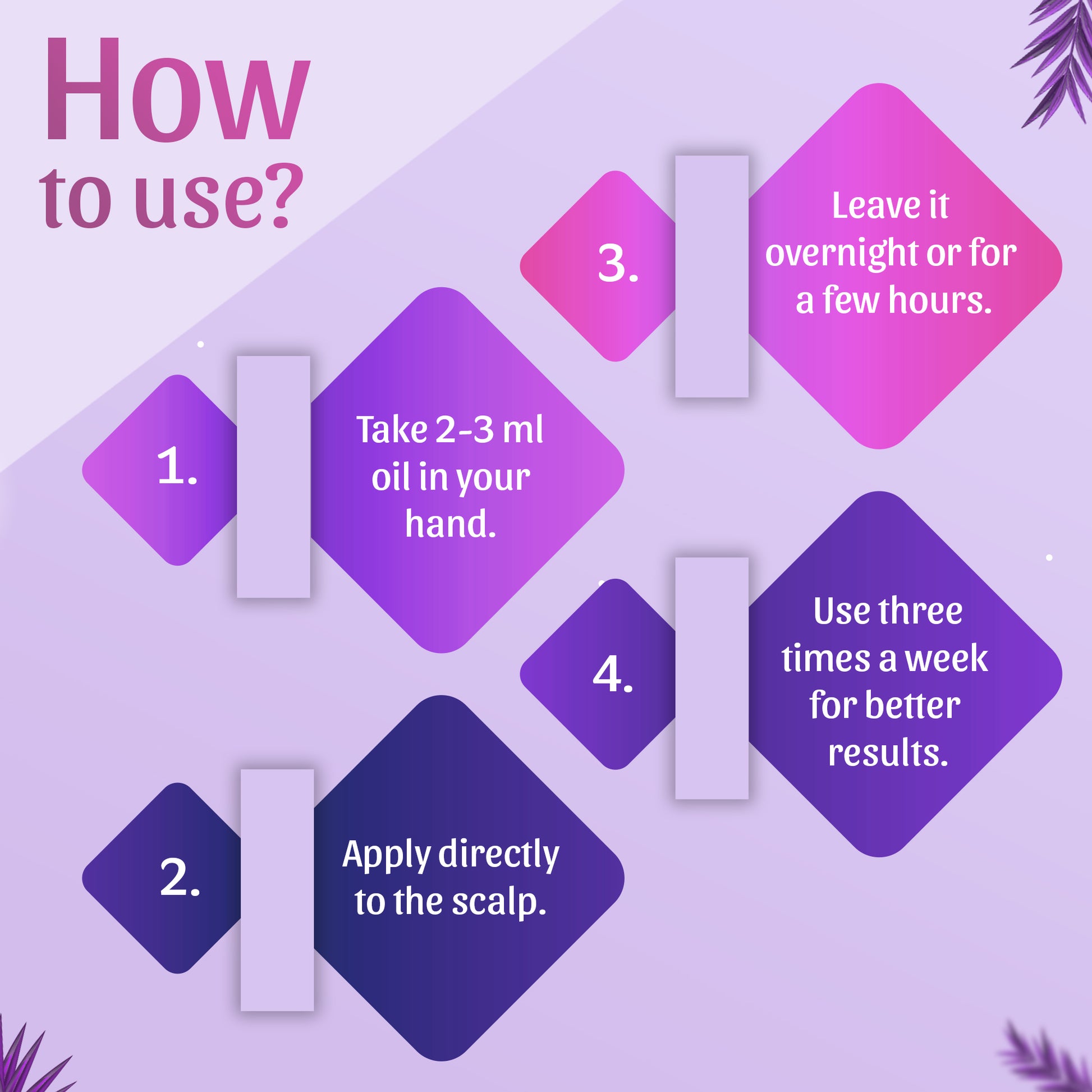 For optimal results, apply the oil 2–3 times a week, or more often if desired, to stimulate hair growth and promote a healthy scalp.