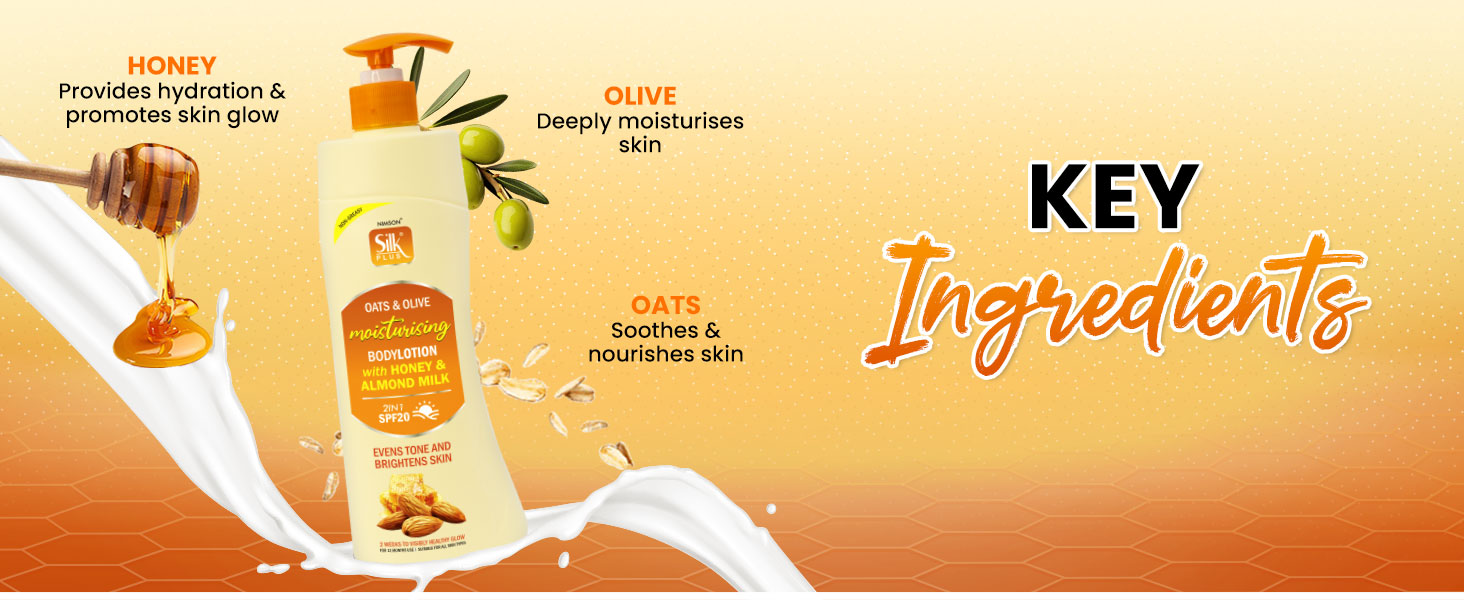 Aqua, Light Liquid Paraffin, Stearic Acid, Cetyl Alcohol, Glyceryl Mono Stearate SE, Butyrospermum Parkil (Shea) Butter, Olea Europaea (Olive) Fruit Oil, Avena Sativa (Oat) Meal Extract, Sesamum Indicum (Sesame) Seed Oil, Prunus Amygdalus Dulcis (Sweet Almond) Oil, Honey, Citrus Limon (Lemon) Fruit Extract, Octyl methoxycinnamate, Benzophenone-3. Methylene Bis-Benzotriazolyl Tetramethylbutylphenol (and) Decyl Glucoside (and) Propylene Glycol (and) Xanthan Gum, Glycyrrhiza Glabra (Licorice) Root Extract, Pentaerythrityl Tetra-di-t-butyl Hydroxyhydrocinnamate, Citrus Aurantium Dulcis (Orange) Fruit Extract, Phenoxyethanol (and) Ethylhexylglycerin, Titanium Dioxide, Tetrasodium EDTA, Fragrance.