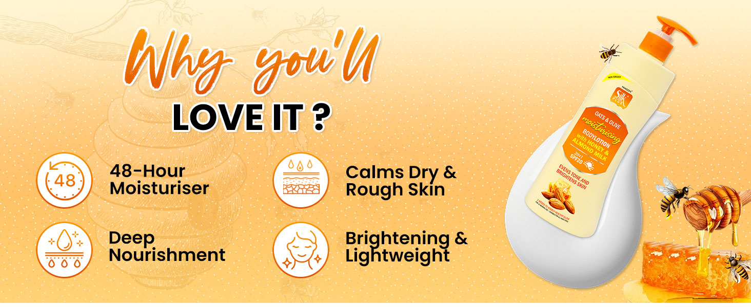 Oats & Olive Body Lotion provides up to 48 hours of deep hydration, keeping your skin soft, smooth, and glowing.