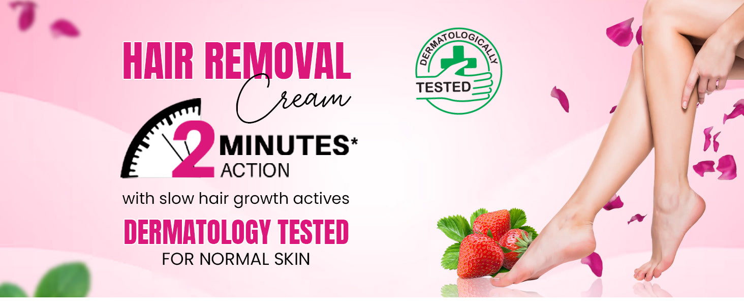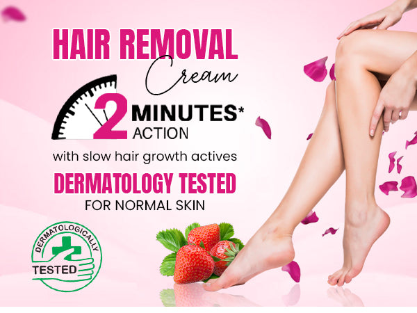 Nimson Silk Plus Rose & Strawberry Hair Removal Cream action starts in just 2 minutes, giving you quick, smooth results.