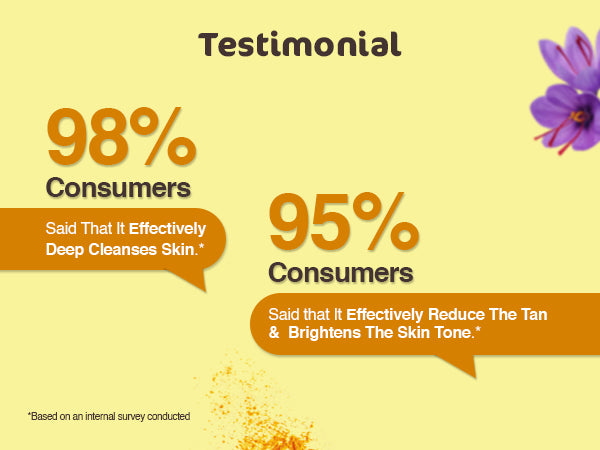 - Tan Removal & Brightens Skin Tone: The combination of turmeric and saffron effectively works to reduce tan, brightening your skin tone and promoting a more even complexion.